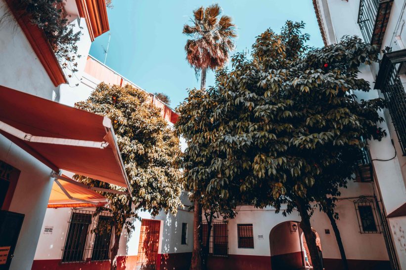 Pasearemos por calles tan evocadoras como Agua y Vida, unidas por el emblemático Patio de Banderas, mientras descubrimos los secretos que esconden sus plazas, patios y estrechas callejuelas. Conoceremos la historia de las tres antiguas sinagogas del barrio y su transformación a lo largo de los siglos, hoy representadas por la Iglesia de Santa María la Blanca, la Iglesia de San Bartolomé y la Plaza de Santa Cruz, sumergiéndonos de lleno en una Sevilla que parece haberse detenido en el tiempo.